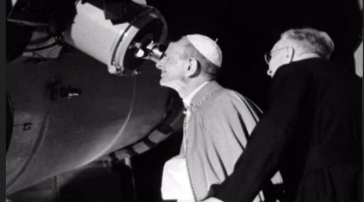 Pope Paul VI peeked through the Vatican’s large telescope. He got a chance to see the lunar area where Apollo 11 landed in 1969; he hand-wrote a message that was left on the moon along with a Vatican flag.